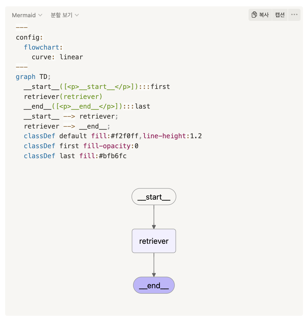 아니면 아래와 같이 mermaid 코드를 아래와 같이 출력할 수 있는데